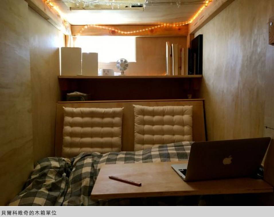 “是的,住在一个木箱是愚蠢的,”贝尔科维奇在博客中写道。“但旧金山高房价政策做成这荒谬的事情 - 木箱这就是我的解决方案。”